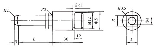 们经过反复研究,设计出了双头连接管扩孔装置。根据绕组出头形状对购进的双头连接管进行再加工,将其扩孔成形,然后再将绕组出头插入后进行引线的冷挤压焊接。双头连接管扩孔装置见图2,扩孔工作是在40t压力机上完成的。由于绕组出头尺寸不一样,因此该扩孔模是一个系列。