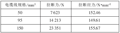 我们选取了几种规格的电缆线,并选择了合适的连接管,经过压接后对其进行了拉力试验和接触电压试验,其结果见表1和表2。