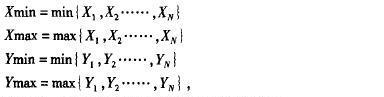 要保证模拟的真实性,就要在系统环境下建立科学的冲裁件几何模型。冲裁件模型是根据系统图形窗口的尺寸,将零件的实际尺寸按照一定的比例进行缩小或者放大,在图形窗口中显示出来,关于冲裁件CAD信息如何传入CAPP系统作者在其它文献中已有论述。为了保证模拟的真实性,就要处理好坐标原点变换和图形显示的比例,一方面要确保冲裁件的轮廓元素均要显示出来,另一方面要保证图形在X,Y轴方向比例不失真。设冲裁件有N个轮廓段,令其轮廓的边界点,即左下角及右上角坐标分别为(Xmin, Ymin) , (Xmax, Ymax),则有