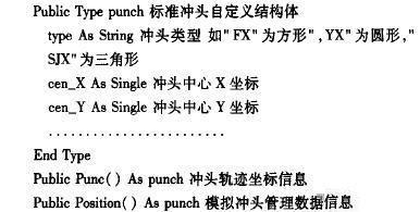 根据上面的定义,系统的数控代码生成模块通过自定义结构,不断纪录冲头在运动时产生的动态轨迹的模拟数据信息: