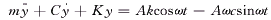 其中通解ya(t)是与系统自由振动对应的瞬态振动响应,在阻尼的作用下,该振动响应将被衰减。这里将对应的响应值忽略。特解yb(t)是分量Akcoswt和Awcsinwt的响应总和。设y1是与余弦分量Akcoswt相对应的动态响应分量,y2是与正弦分量Awcsinwt相对应的动态响应分量,则系统的总响应为 - j: a2 b3 {5 d$ C5 ~' B) G2 f4 K+ B; z) M4 M( ?/ p ]# w! b8 ~1 o8 p! t5 u* b5 f6 ?# l! S0 `; J( B' P, l. [0 R/ w1 _
