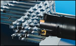 山特维克可乐满(Fair Lawn, NJ)提供的CoroMill 210系列铣刀设计用于插铣和高速平面铣削。其特点是高进给、轴向小切深的切向进刀具有一个10°的切入角。CoroMill 300系列铣刀已经补充了有利于高速加工获得高生产率的超密齿铣刀。