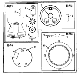 由于各零部件的形状很不规则,装配中定位定向很困难。对于多数零部件,采用特殊设计的料仓式送料,包括:用于摩擦圆盘送料的导料筒、用于弹簧片送料的导料槽、用于电机送料的斜面、用于球体套送料的导料槽、用于杠杆送料的托盘等。对少数形状较规则的零部件,则采用振动送料器送料,这些零件包括减速器和定位套筒。