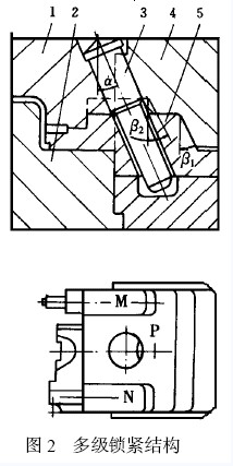 总之, 对于那些抽芯高度相差大的滑块,采用多级锁紧结构,对减小滑块的重量、延长模具寿命,节约-模具材料具有重要的作用。