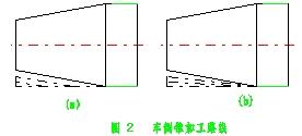 当按图b的走刀路线车正锥时,则不需要计算终刀距S,只要确定了背吃刀量d,即可车圆锥轮廓。但在每次切削中,背吃刀量是变化的。图2为车倒锥的两种加工路线,车锥原理与正锥相同。