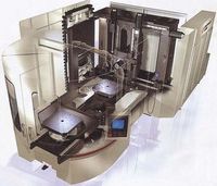 图3 美国CINCINNATI LAMB公司的HPC-800HP卧式高速加工中心X、Y、Z三轴采用双PHS-BS驱动,V=80m/min,加速度1.5g。框中框结构的双驱动大大提高了快速进给的稳定性
