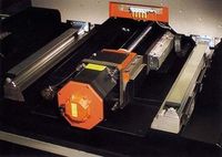 直线电动机是借助于电磁作用原理,直接将电能转换为直线运动的驱动装置。世界上第一台直线电动机是英国物理学家惠斯登(Sir Charles Wheatstone)发明,并于1845年取得专利。最初以高速运输和牵引为主,经过不断改进后应用范围逐渐扩大到电脑及办公设备、半导体制造装备、医疗装备、工业自动化、自动绘图仪等等。根据不同应用场合的差异,直线电动机的种类也很多。近年出现一种由直线电动机与铝合金滚柱导轨组合的高速线性驱动部件。Vmax=600m/min,加速度4g,应用在快速抓取和放下的场合。图1为中国台湾HIWIN公司的LMS、LMC小推力伺服直线电动机,Vmax=210m/min。