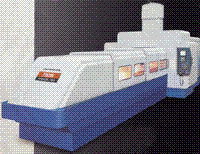 2. 大型、超长行程高速加工中心,航空航天制造业中轻合金、薄壁、金属去除率大的整体构件“镂空”加工。例如美国CINCINNATI公司的“Hyper Mach”加工中心(46m);日本MAZAK公司的“HYPERSONIC 1400L超高速加工中心(见图4),x、y轴采用AC-LM,快进速度120m/min,能将整体铝块镂空成飞机零件(Z轴仍用PHS-BS)。