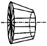 由于砂轮轮廓是由一条母线绕回转轴形成(该母线由形成砂轮大端面上的一条径线和形成砂轮锥面的直线两部分组成),因此采用下列步骤求得砂轮曲面上的点坐标:首先在砂轮局部坐标系中,将母线按一定的密度取点,以坐标点Pw0(0, j),j∈(0, n)记录;其次,将坐标点绕回转轴按等步距旋转360°离散,记录下相应的坐标点Pw(i, j), i∈(0, m), m=int(360°/q (q为步距,用度表示);最后,将坐标点Pw(i, j)转化到机床坐标系中。图3a为离散后的砂轮。